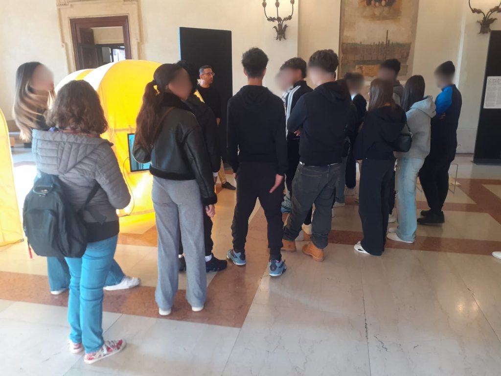 On 10 October 2025, the INCA educational module was publicly launched at Sala Anziani, Palazzo d’Accursio, Bologna, as part of the activities accompanying the INCA exhibition. The launch event was attended by four classes of students, twelve teachers, and various institutional stakeholders, giving them the opportunity to learn about the contents and rationale of the newly developed educational module.