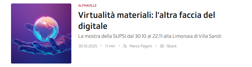 Additionally, on 30 October, RSI (Radiotelevisione svizzera) aired an interview of almost 12 minutes with Niccolò Cuppini, in which he shared further insights into the exhibition, the INCA project, and the broader theme of the materiality of the digital.