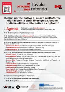 On October 10, a round table entitled “Participatory design of new digital platforms for the city: guidelines, ethical best practices, and a comparison of alternatives” will take place from 16:00 to 17:30 at Sala Anziani – Palazzo d’Accursio (Bologna).