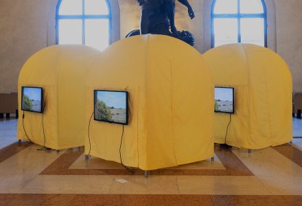 Compiler Machine is a video installation formed through three portable tents, inspired by those historically used by telecommunications technicians to work in…